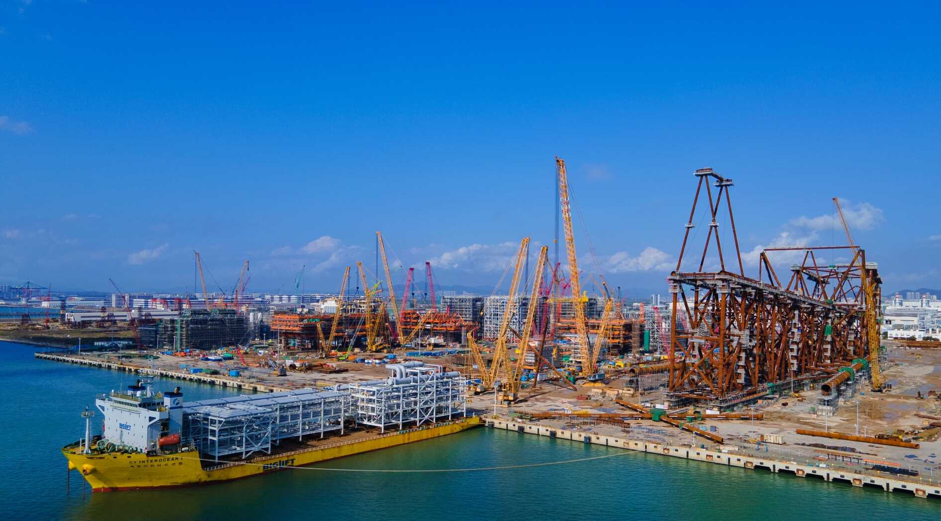 主要設施:分段預制車間、結構預制車間、制管車間、組塊配套車間、噴涂車間、浮體平臺(420m×110m×13.9m)、承載力4000噸~50000噸的滑道5組。
